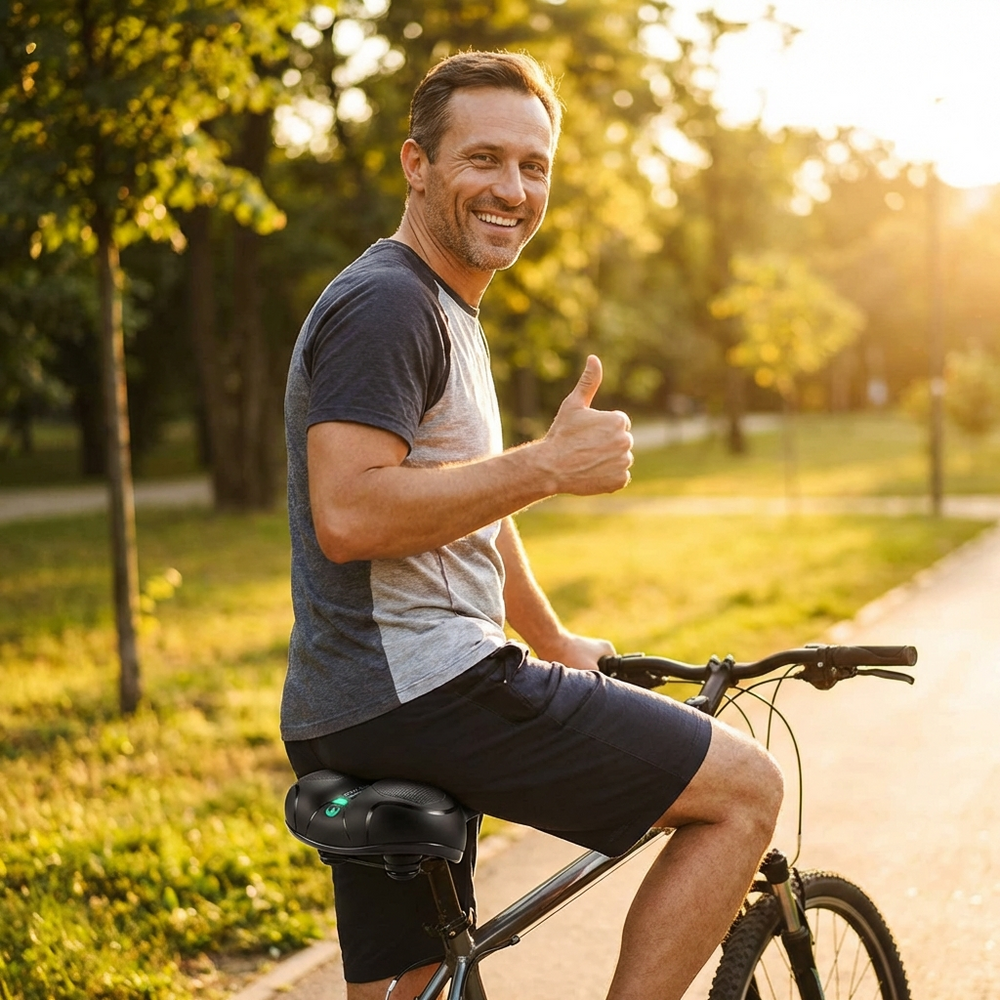 « Je peux enfin reprendre plaisir à faire du vélo — l'assise est tellement moelleuse, plus jamais de douleurs aux fesses, peu importe la durée de ma sortie. »